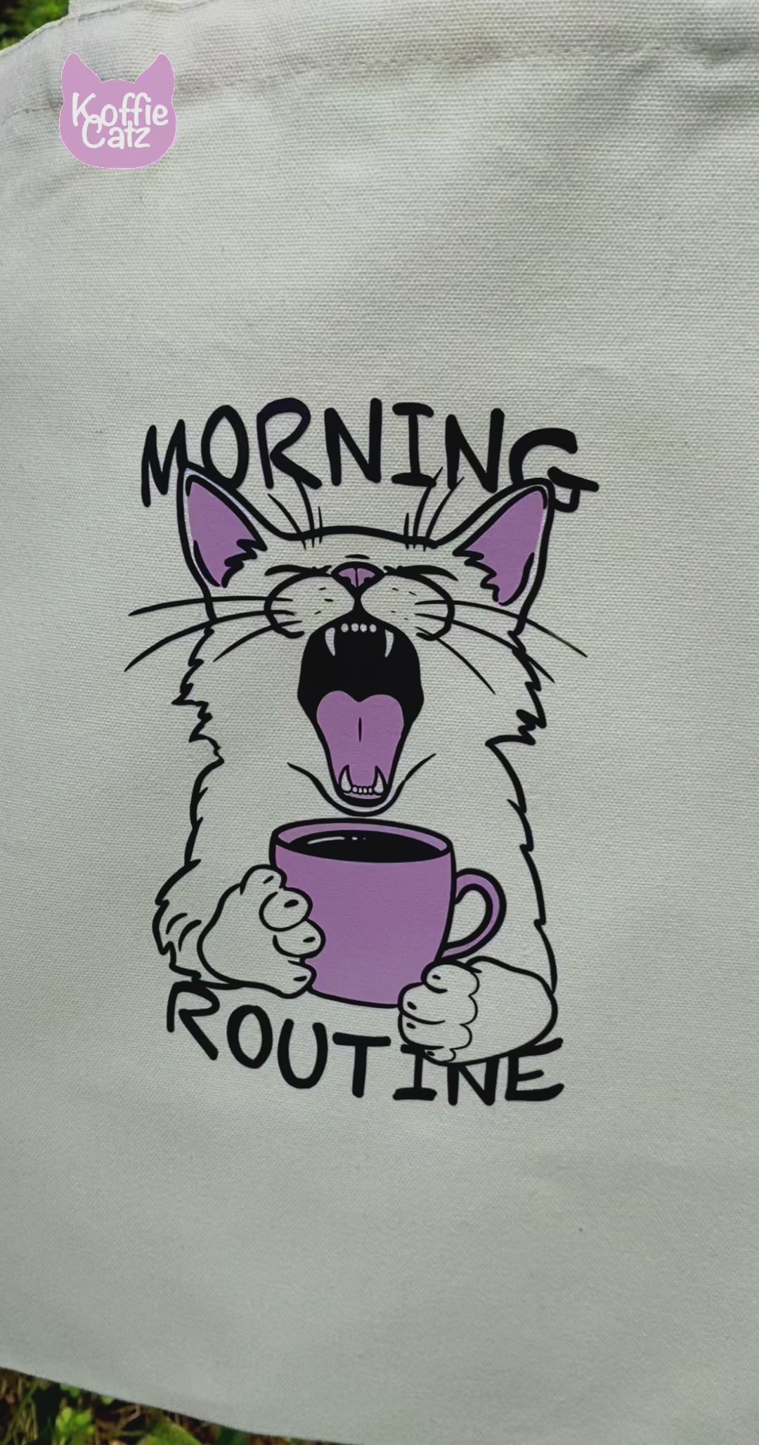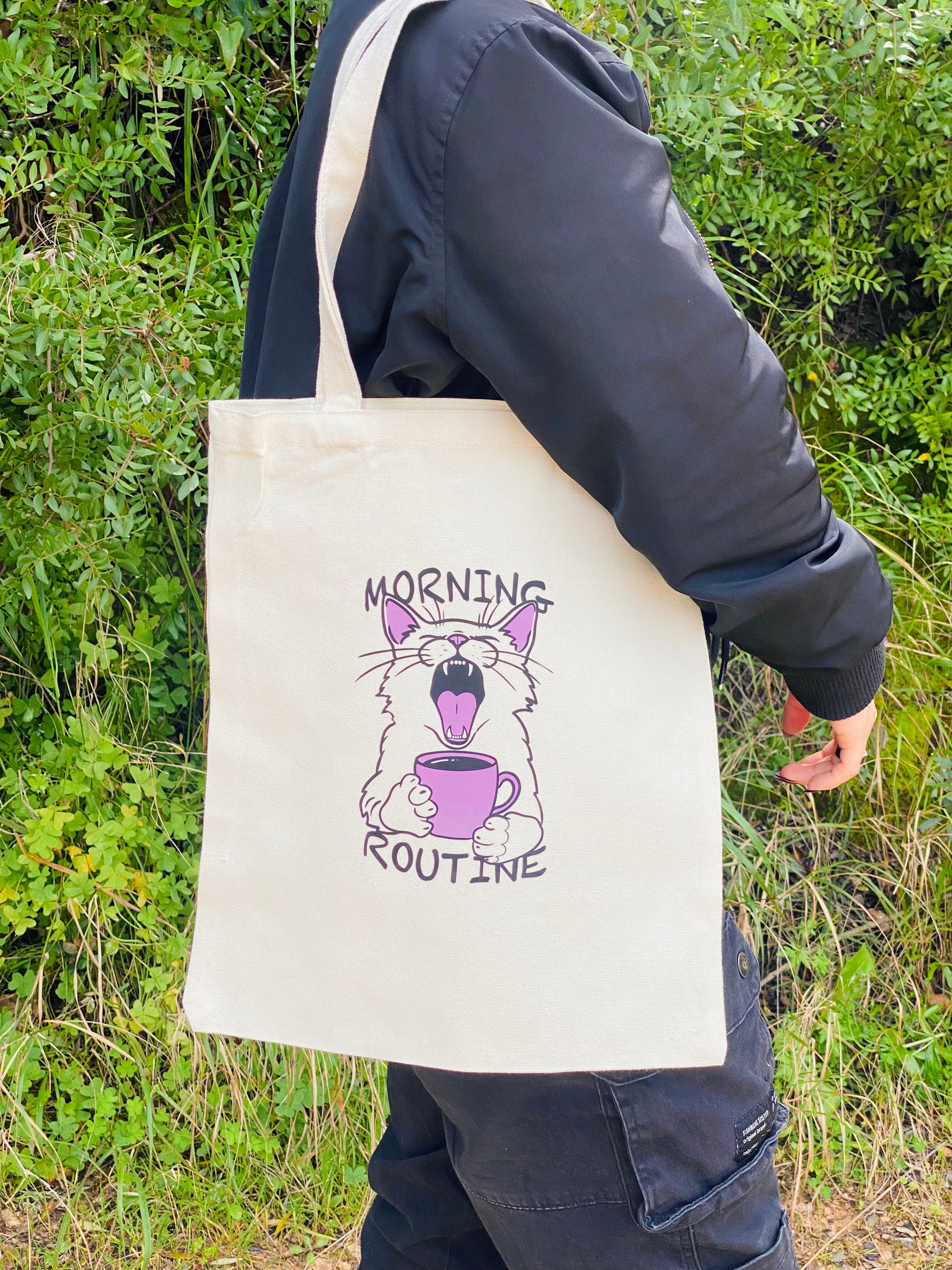 Add some cuteness to your everyday journey with our tote bag. Bring sleepy kitty drinking coffee with you!